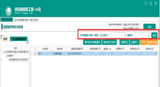 重要提示:离线投标工具价格端口首先维护投标文件基本信息;然后进行报价,在已标价货物清单行报价-单价分析表中的未含税报价-单价根据招标文件附件《已标价货物清单行报价暨投标报价汇总表》的合计填写单价或单价和,税率按招标文件要求填写;维护单价分析表中将《已标价货物清单行报价暨投标报价汇总表》与开标文件打包压缩后上传,不需要设置密码。